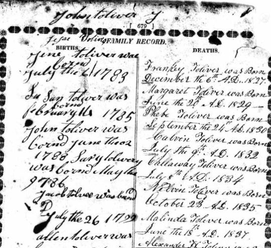 I couldn’t find evidence-based documentation for the continued lineage of this line of Taliaferros. I also couldn’t locate a transition from Taliaferro to Toliver. In fact, most records for the five Toliver brothers refer to them as “Tolivers” from the start. The records begin in North Carolina with no clear connection back to Virginia.